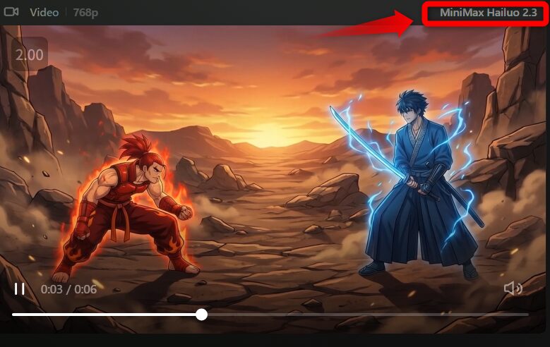 しっかりとHailuo 2.3で生成してくれました。