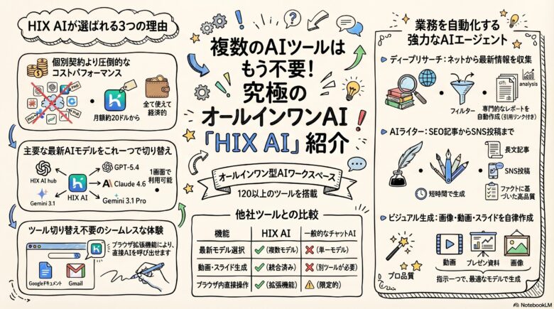 複数のAIツールはもう不要!究極のオールインワンAI「HIX AI」紹介